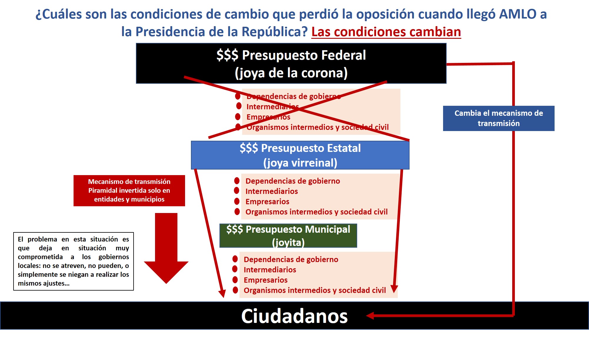 ¿Cuáles son las condiciones de cambio que perdió la oposición cuando llegó AMLO a la Presidencia de la República? El texto aborda las condiciones de