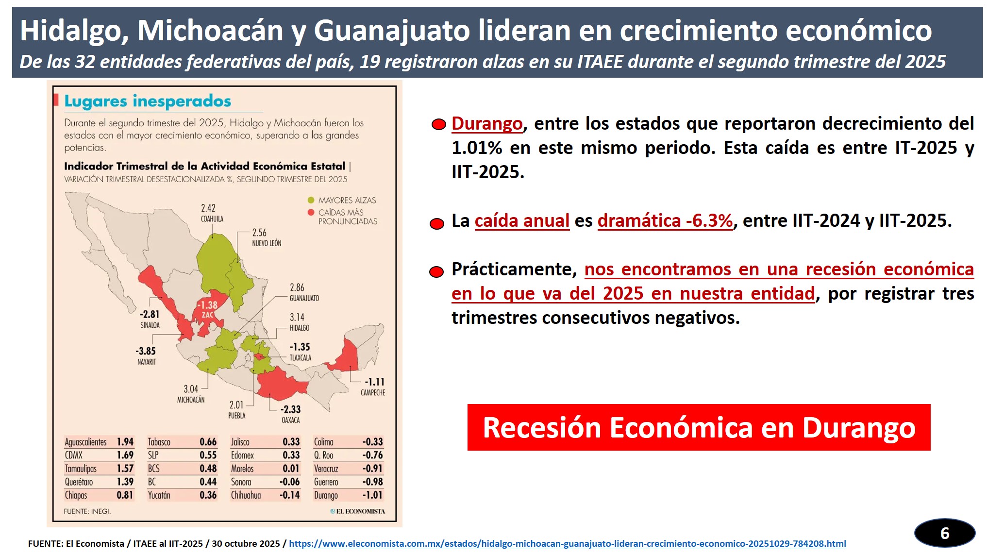 “El tercer informe de gobierno y su propaganda no pudieron ocultar la dura realidad. Durango se encuentra en una encrucijada, con una economía en recesión,