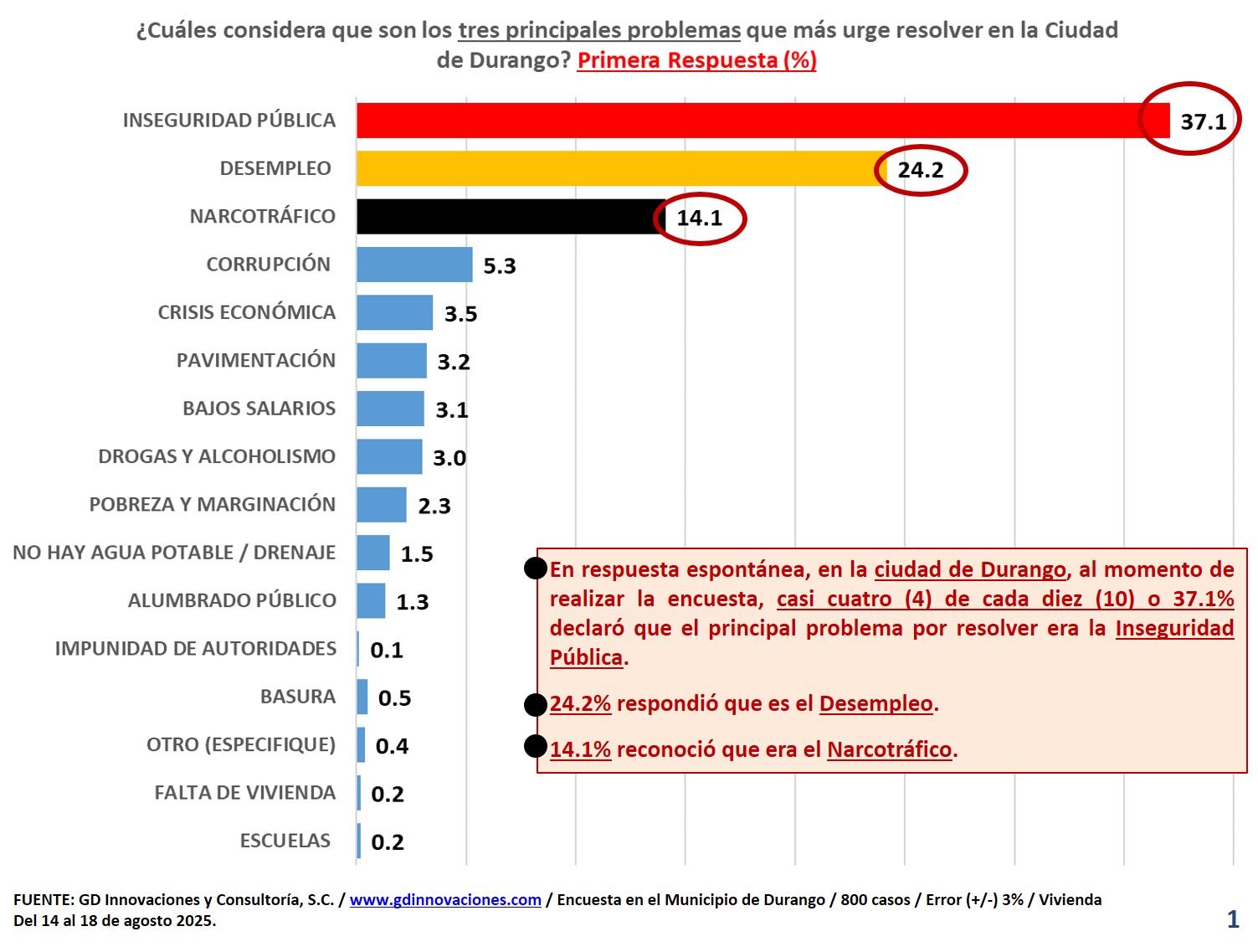 Principales hallazgos del estudio de opinión en el Municipio de Durango Los resultados de una encuesta en vivienda realizada por GD Innovaciones y Consultoría, S.C.